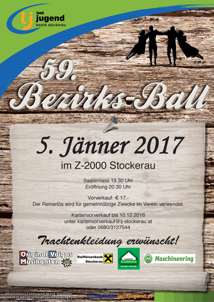 Am 5. Jänner 2017 findet im Stockerauer VAZ Z2000 wieder der Landjugendball des Bezirks Stockerau statt.